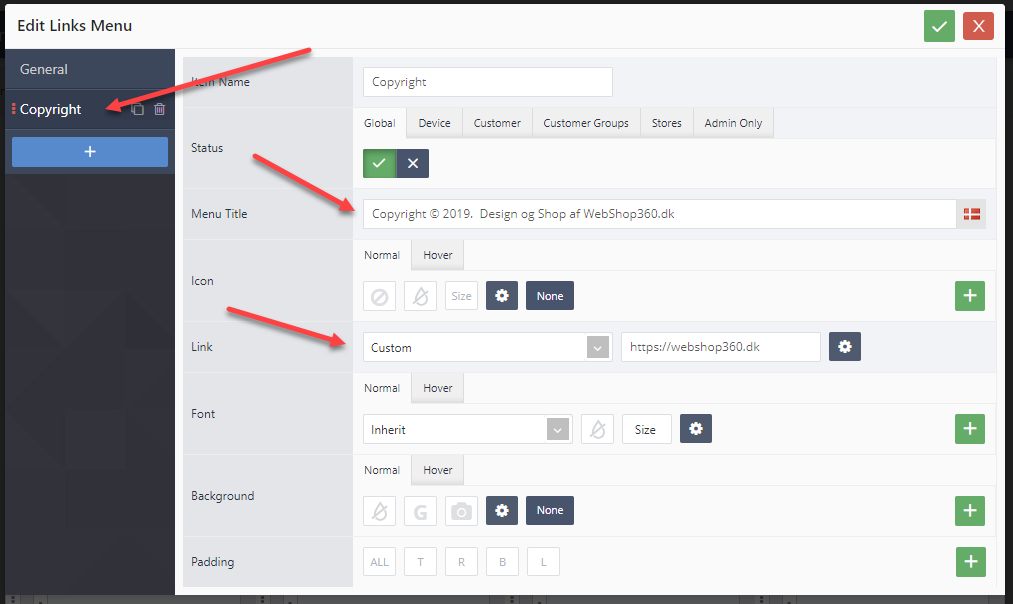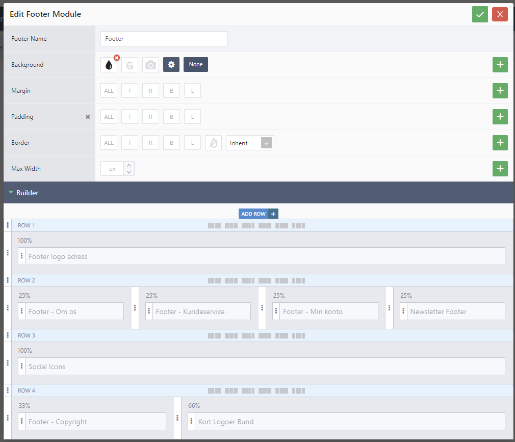 Her får du mulighed for at ændre indholdet på samme måde som i de øvrige moduler der bruges i Footeren